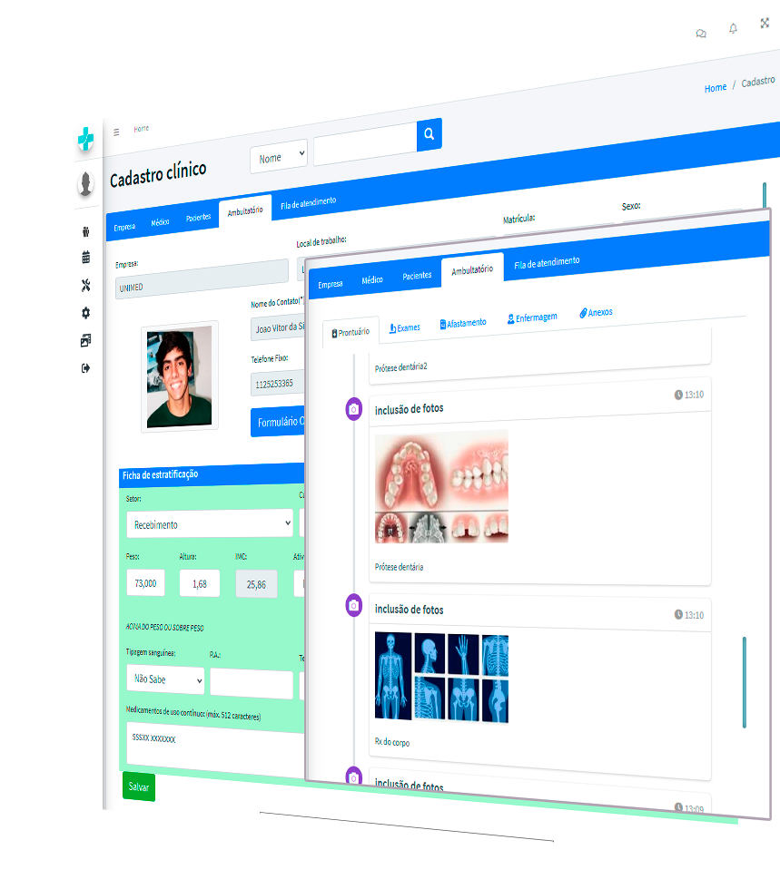 Anexos: Qualquer documento ou resultado de exame que seja necessário registrar no prontuário, de acordo com a política da clínica, pode ser salvos. Bastando para tanto que existe um sistema local para fazer o scanner do documento/resultado de exames.